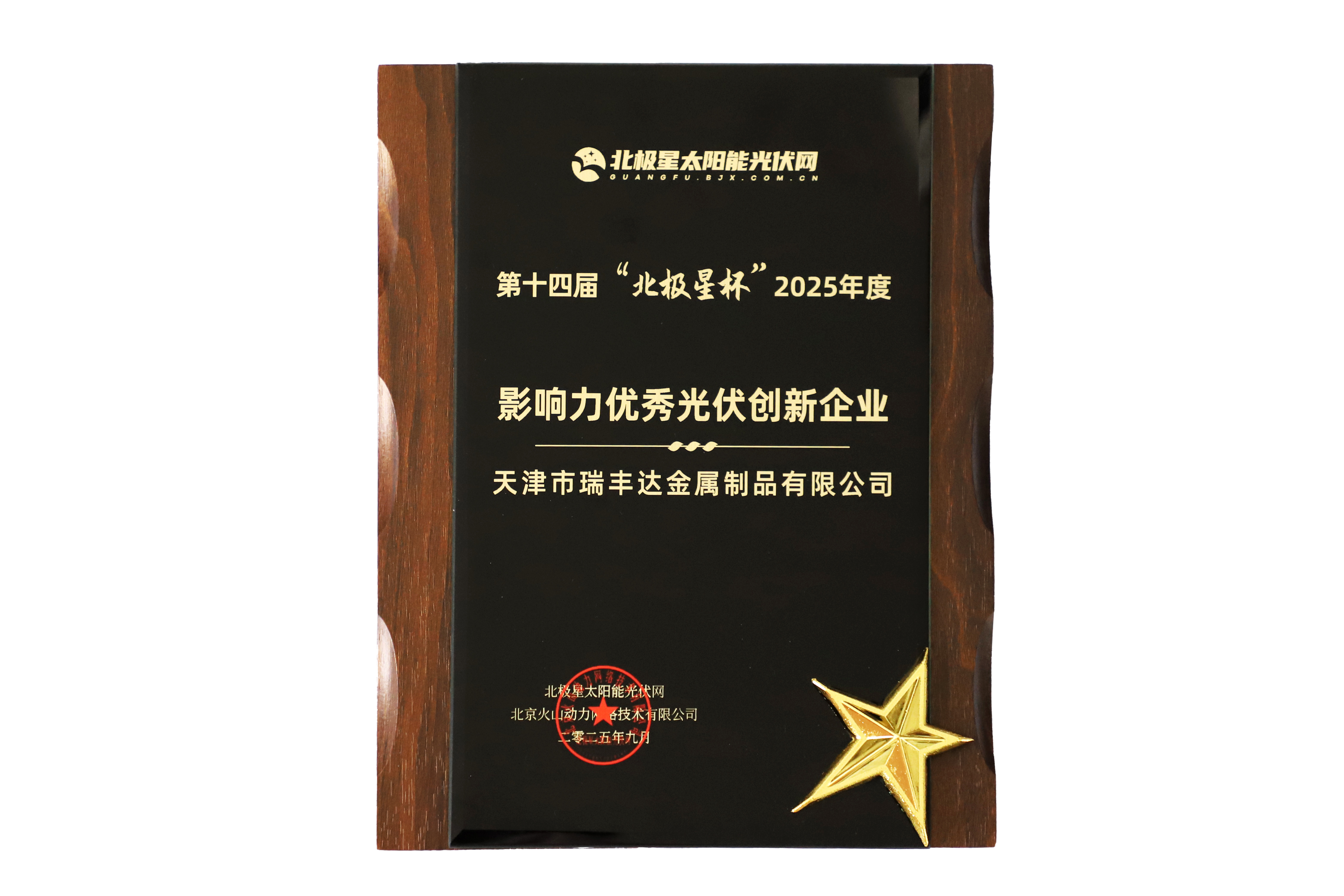 9月9日,在南京舉辦的第十四屆“北極星杯”光伏影響力品牌評選頒獎典禮上,天津市瑞豐達金屬制品有限公司憑借其卓越的產品質量、技術創新的不懈追求以及對光伏行業發展作出的突出貢獻,成功攬獲“影響力光伏材料及配套品牌” 和 “影響力優秀光伏創新企業” 兩項大獎。