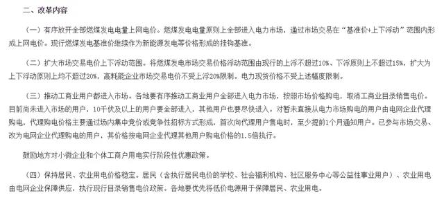 ? ? ? 10月12日,國家發(fā)改委印發(fā)《進一步深化燃煤發(fā)電上網(wǎng)電價市場化改革的通知》,明確表示燃煤發(fā)電電量原則上全部進入電力市場,通過市場交易在“基準價+上下浮動”范圍內(nèi)形成上網(wǎng)電價。市場交易電價浮動范圍由現(xiàn)行的上浮不超過10%、下浮原則上不超過15%,擴大為上下浮動原則上均不超過20%,高耗能企業(yè)市場交易電價不受上浮20%限制,并全面推動工商業(yè)用戶進入市場,有序推動尚未進入市場的工商業(yè)用戶全部進入電力市場,取消工商業(yè)目錄銷售電價,促進工商業(yè)企業(yè)購電全部實現(xiàn)市場化,從即日起一個月內(nèi)為市場化交易的過渡期,從12月起,企業(yè)購電全面采用市場化電價來結算。